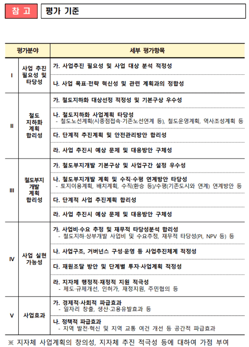 철도 지하화 통합개발을 희망하는 지자체로부터