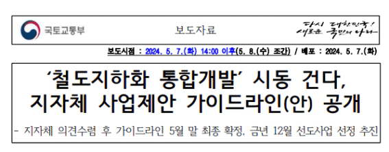 철도지하화 통합개발 시동 건다, 지자체 사업제안 가이드라인(안) 공개(철도건설과).pdf