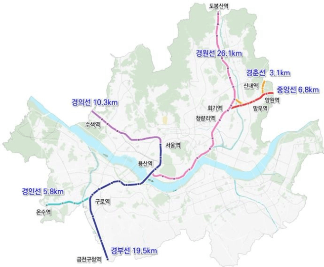 서울 시내 국가철도 지상구간 현황. 서울시 제공