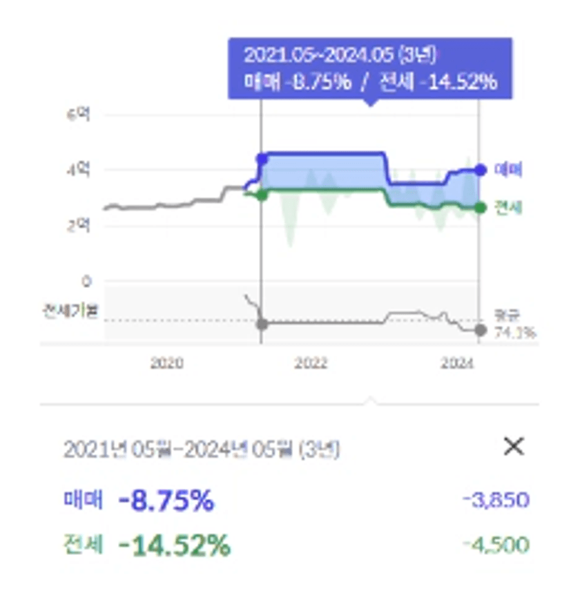 4.1억(분양가) → 4.4억(현재)