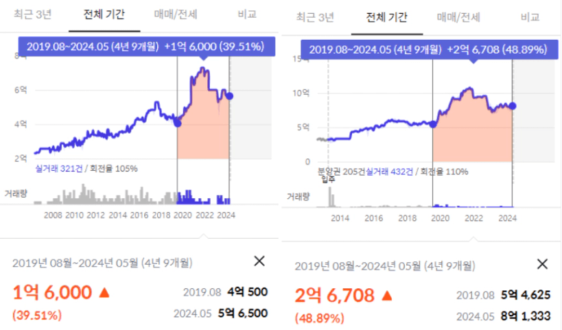 이전 상승장에서 두 단지 가격이