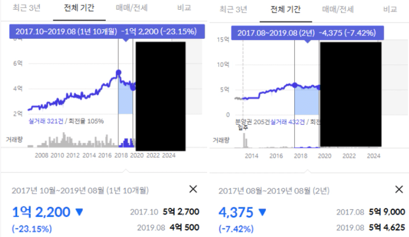 A단지는 약 2년동안 20%가 넘게 빠졌고