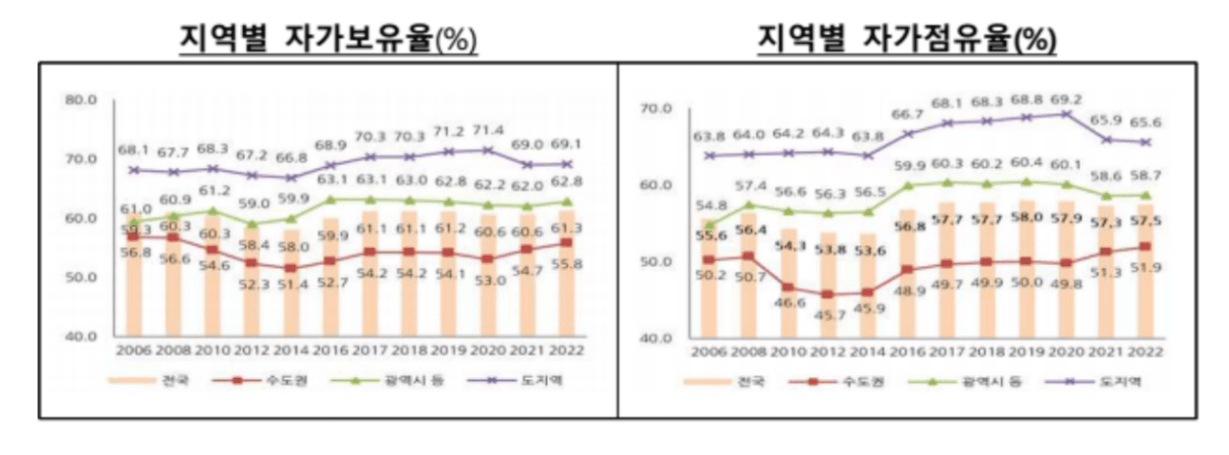 서울의 자가보유율과 점유율은