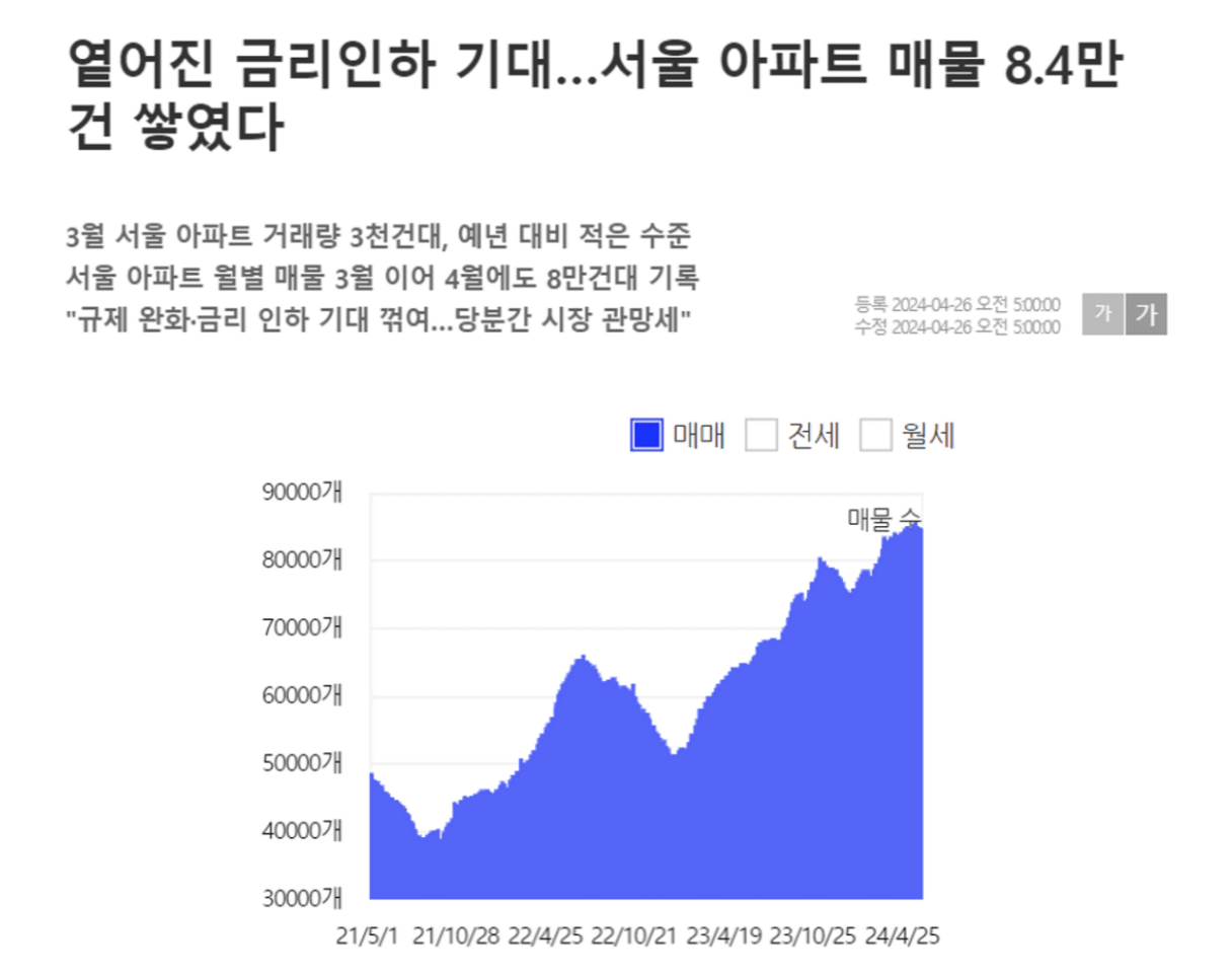 더 많은 매물이 쌓여 있는 상황입니다.