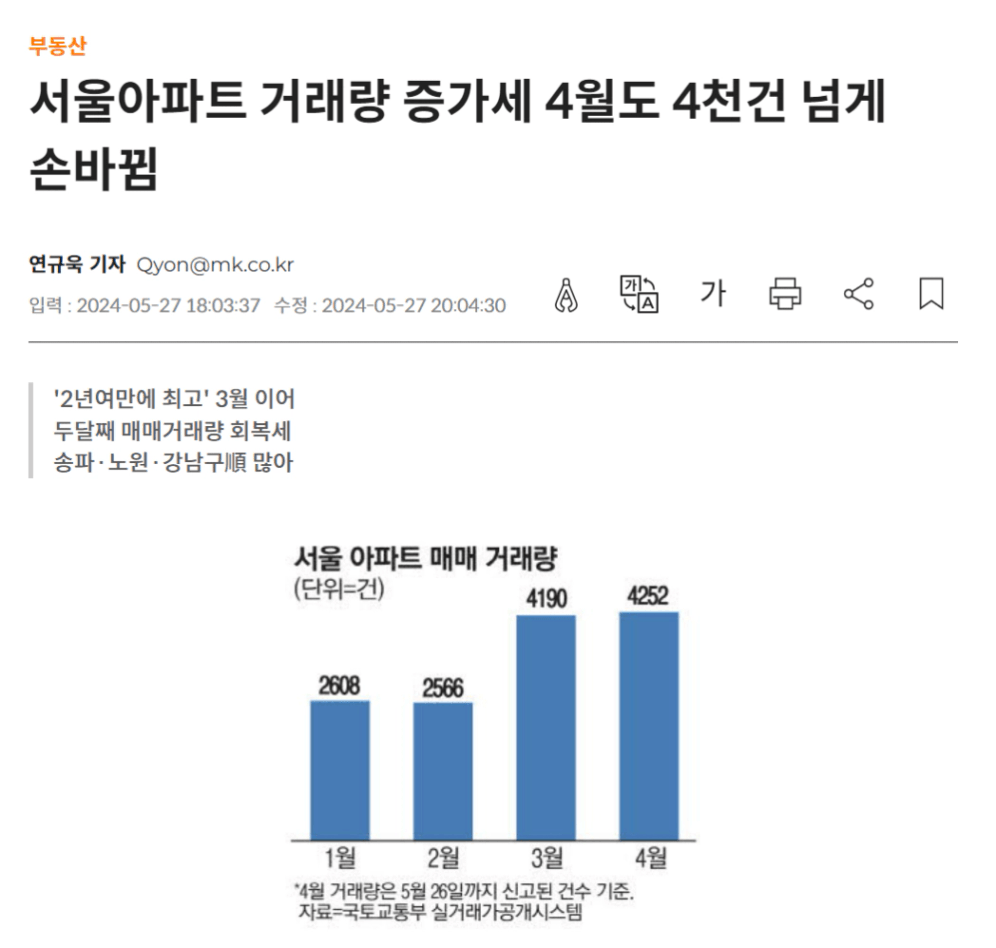 최근 서울 아파트 거래량이 회복되면서