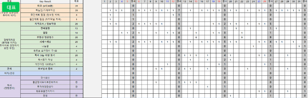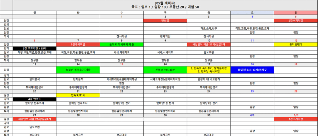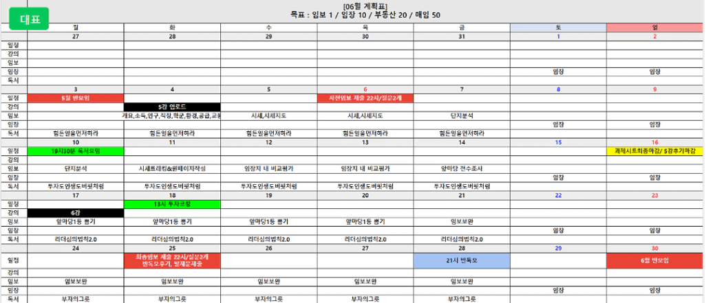 목표: 임보 1 / 임장 10 / 부동산 20 / 매임 50