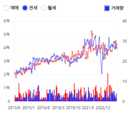 흠.. 전세가도 두개가 엎치락뒤치락하는 모습.