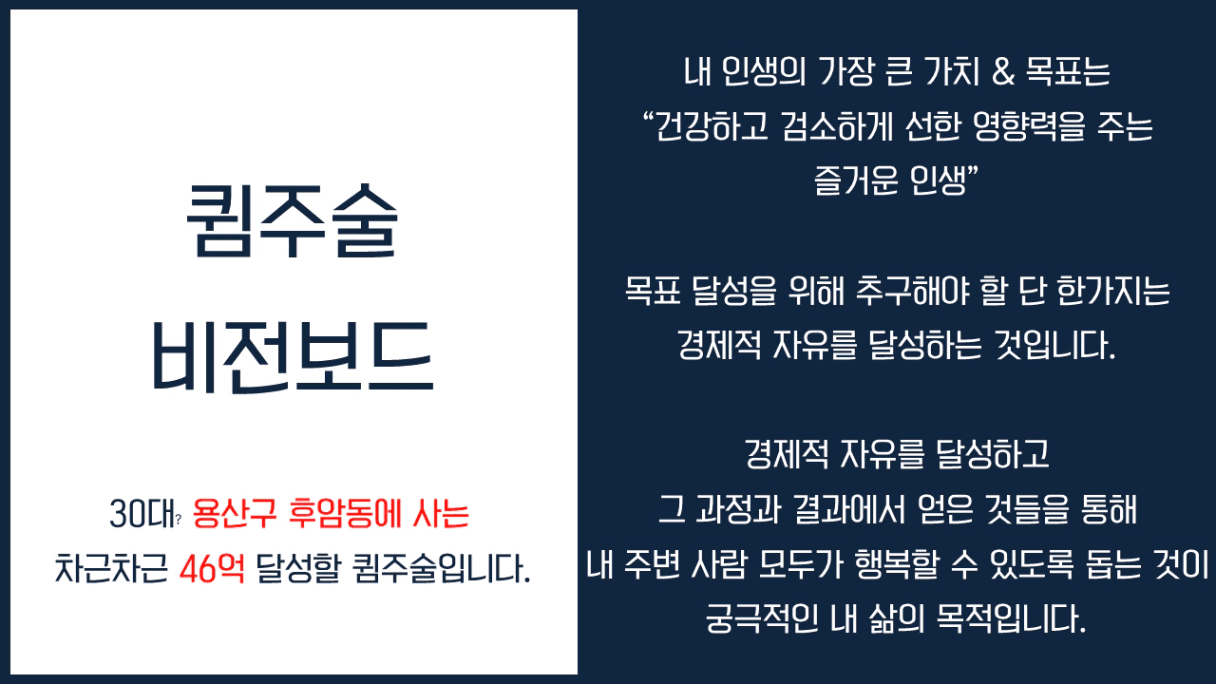 조장님의 구체적인 비전보드 많이 비엠했습니다! 비전보드 달성하시는 그날까지 응원하겠습니다 !!