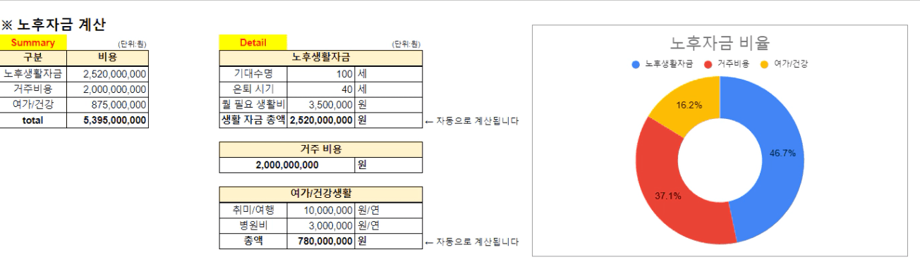 필요한 노후 자금 합계 : 53억9천5백만원