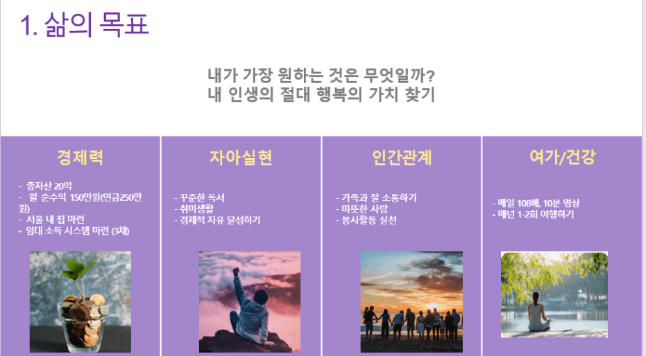 처음 만드는 비전보드는 뭔가 설레지요~? 앞으로의 바램님의 비전을 응원드립니다~ 이따 조모임에서 뵈어요~~