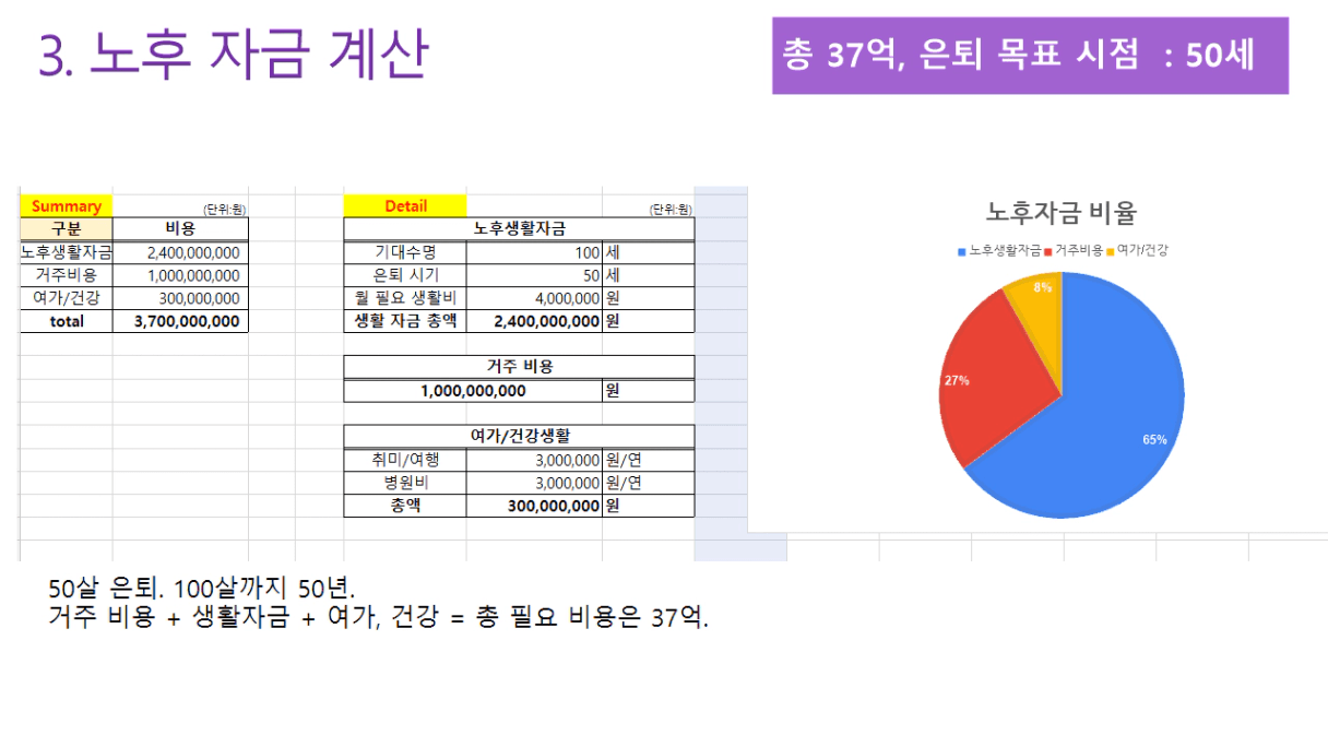노후자금이 얼마인지 대략적으로 파악하고 연수익률 대비 몇살 때 노후 자금을 모을 수 있는지 눈으로 확인하니 50세, 60세까지 꾸준하게 투자를 해야하는구나.. 라는 현실?을 느낄 수 있었네요.