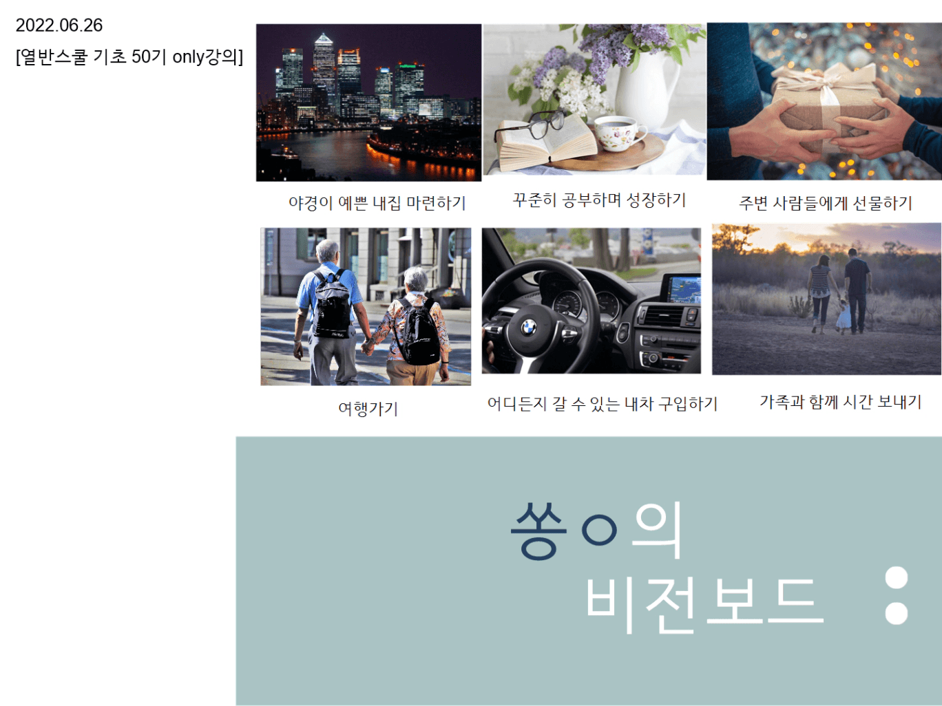 22년에 열반스쿨 기초반 강의만 수강하면서 비전보드를 작성했는데요.