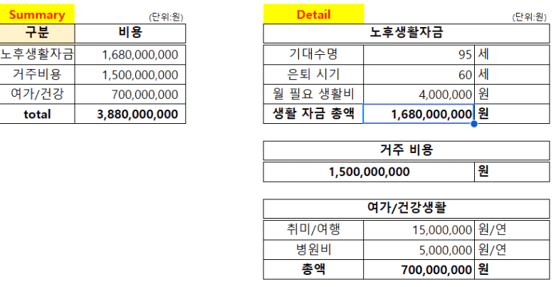 목표금액 : 38.8억 (현재나이 40세 연저축액 5000만원에서 시작)