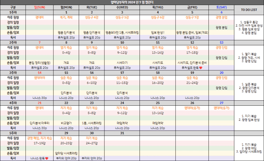 실적 : 임장 2회, 임보 거의 보충(이번주에 완성을 눈 앞에!!)