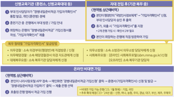 은행에서 부대를 방문하여 가입을 진행하곤하지만,
