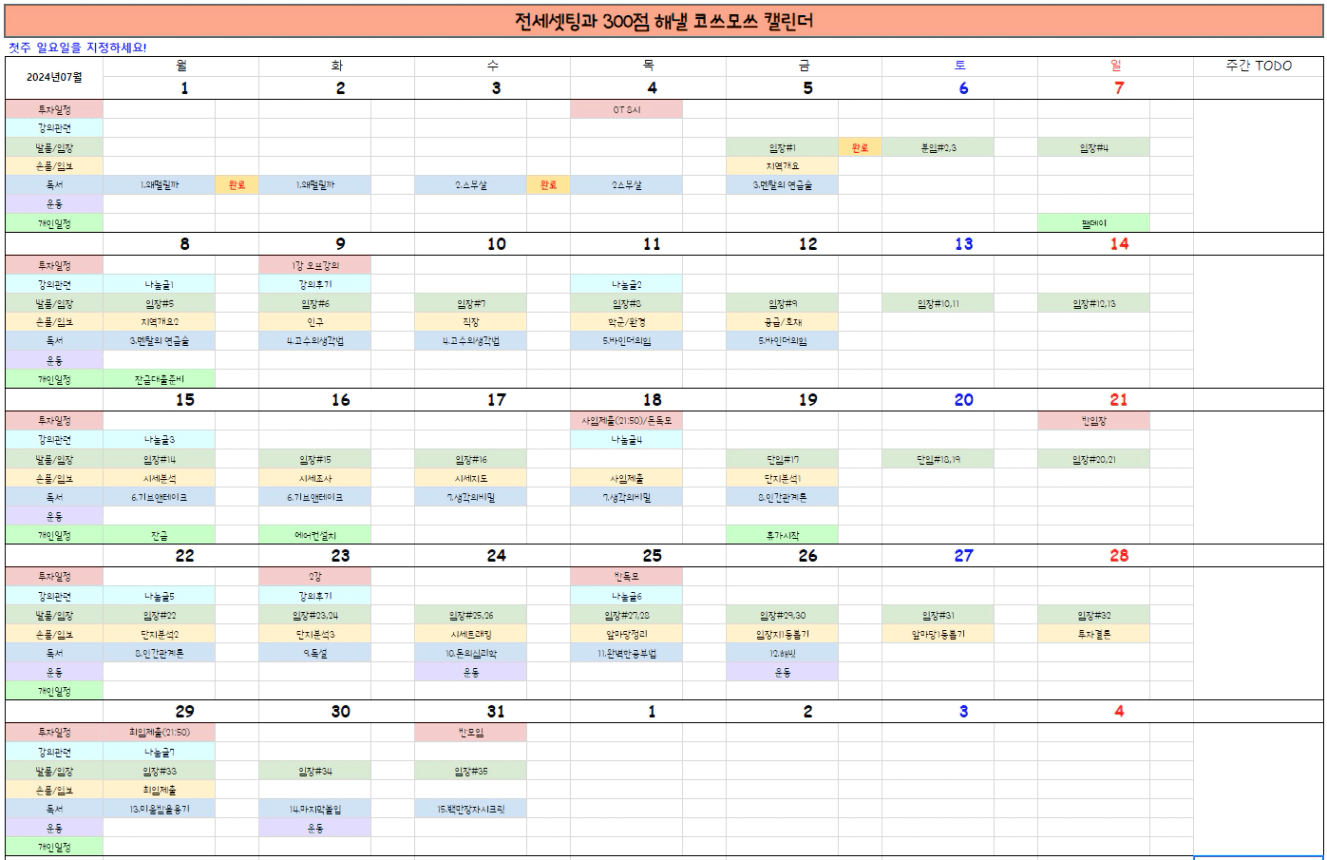 첫학기 센쓰튜터님께서 피드백 주신 내용의 우선선위 고려하여 여름학기 계획을 다시 작성하였다.
