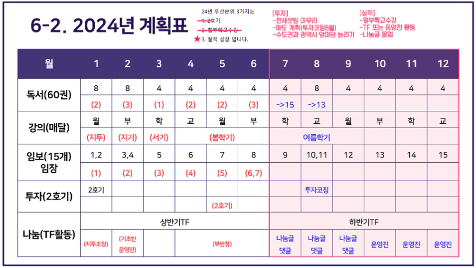 올해 목표는 1.2호기 / 2. 월부학교수강 / 3.질적성장 3가지 였는데,