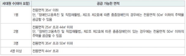 🧡세대원 수에 따른 전용면적 제한 🧡