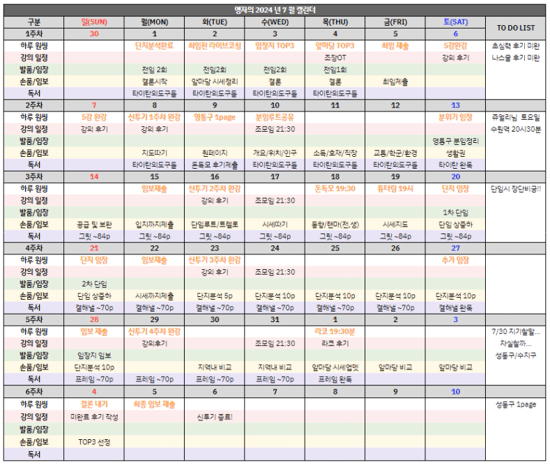 앵자님 한달 캘린더 너무 좋네요~ 지치지 않고 우리모두 화이팅 !!