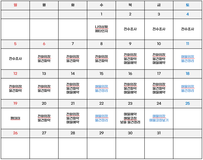 "평일에도 임장할 수 있는날은 이 때, 이 때가 가능하구나."