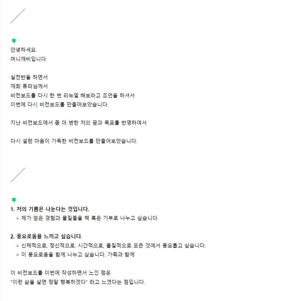 머니깨비님 비전보드 작성 고생 많으셨습니다✨ 목표에 한발짝 다가가는 시간 되셨기를 응원하겠습니다 :) 화이팅이에용❤️