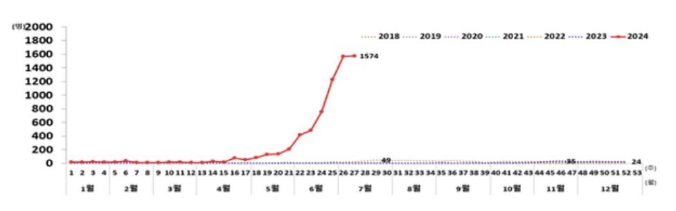 지난 6일 기준 백일해환자가