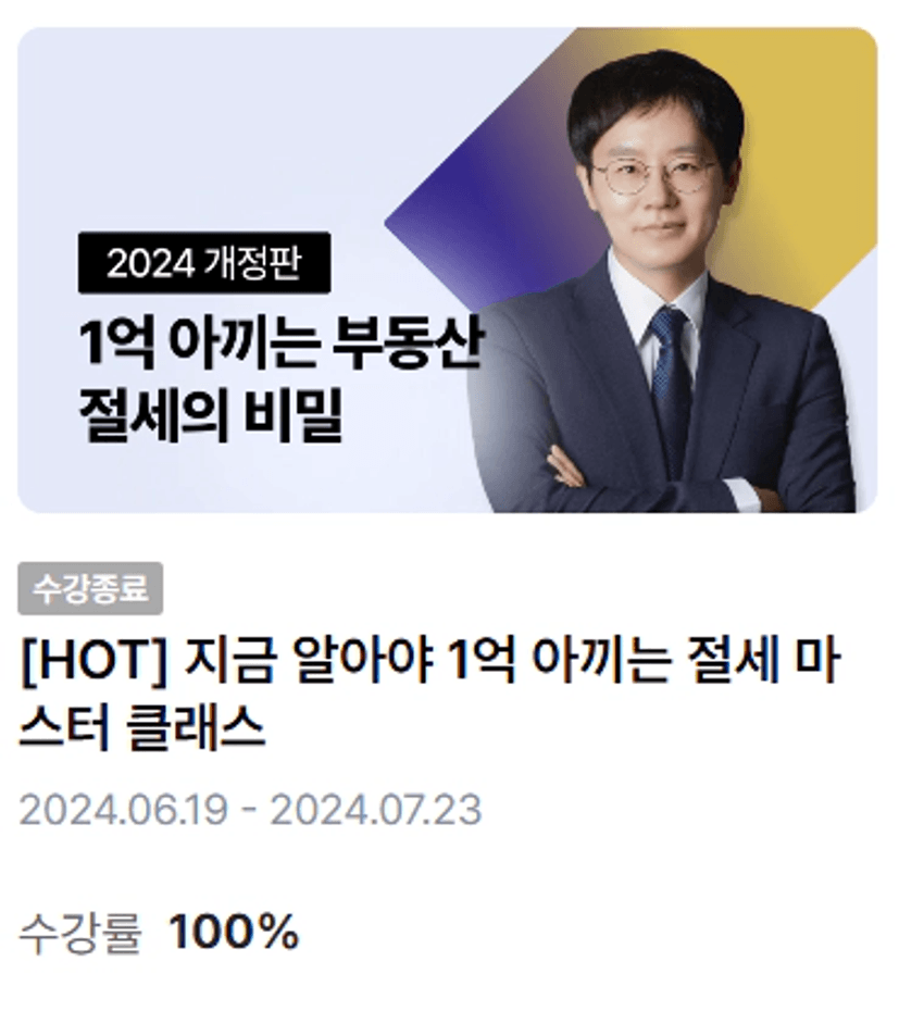 수강인증 합니다. 무지했던 부동산 관련 세금에 관심을 가지고 내 상황에 맞춘 절세전략을 시뮬레이션 해보는 계기가 되었습니다. 감사합니다.