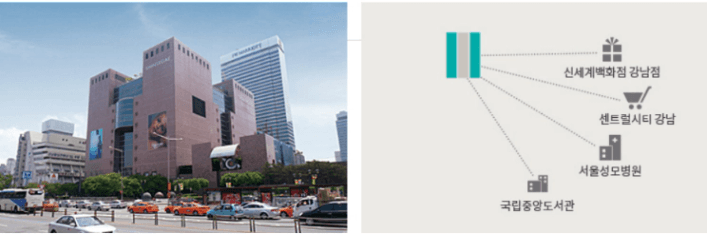 신세계 백화점을 걸어서 갈 수 있습니다.