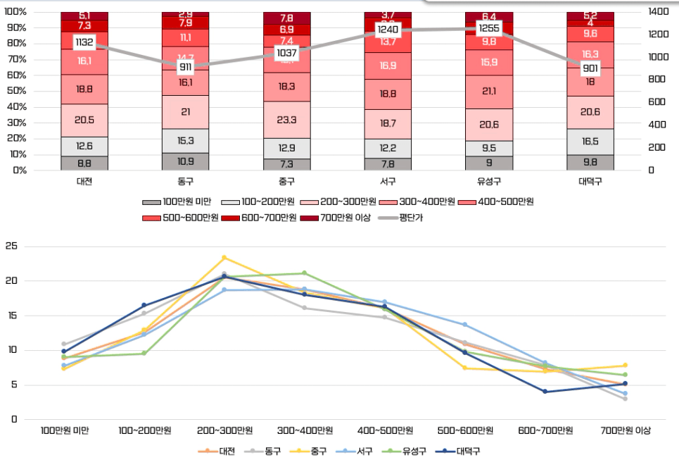 아~ 대전의 1등 서구에는 월소득 500만원 이상 소득이 높은 층 비중이 26%구나~