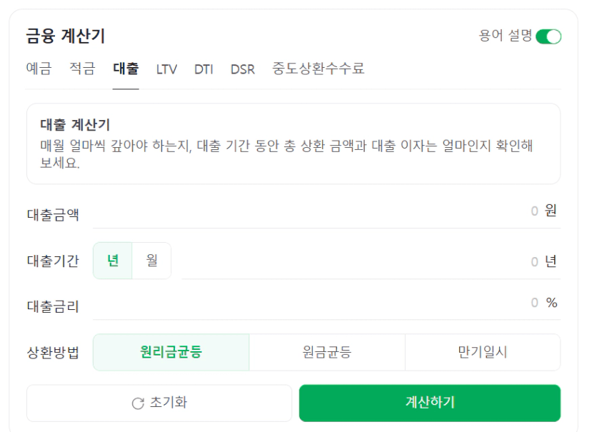 네이버의 대출 계산기를 활용해도 좋습니다.