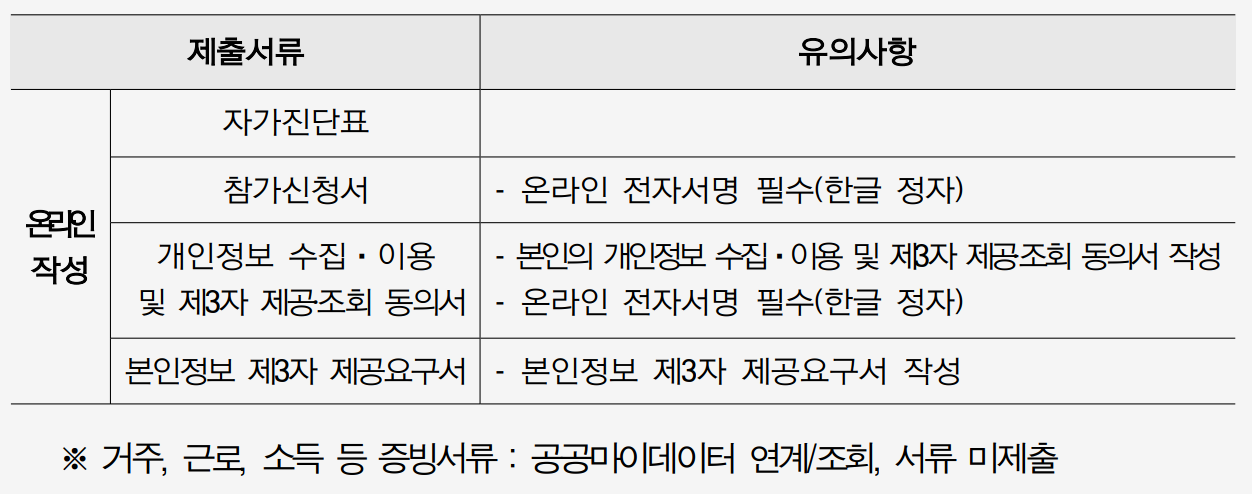 자가진단표, 참가신청서 외 동의서 등입니다.