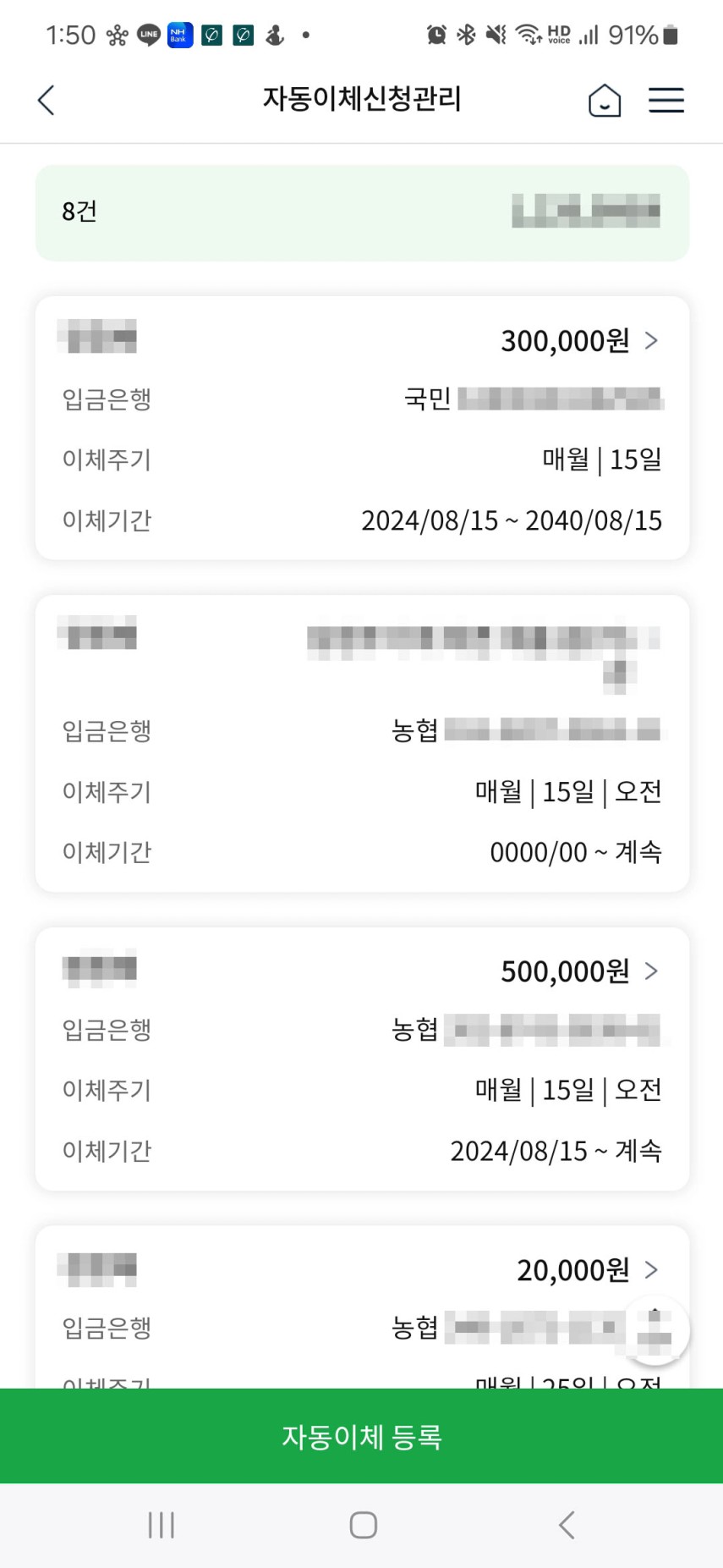 향후에 같은 은행으로 통일하여 관리하기 쉽게 할 예정입니다.(매달 하나씩)