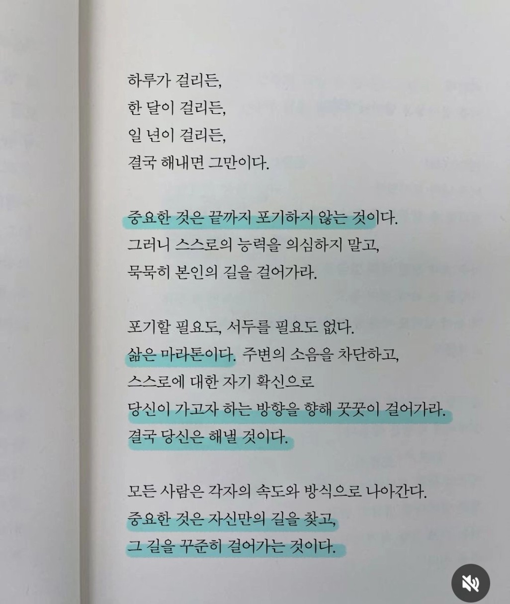 꿋꿋하게 자신만의 길을 가시기를 응원드립니다 ^^