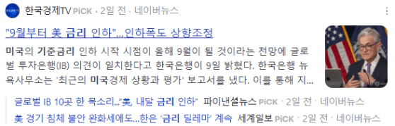 한편, 미국의 기준금리는 작년 7월 인상 이후 1년이 넘도록 동결로 유지되고 있는데요. 현재 ‘9월이면 미국의 기준 금리 인하가 있을 것이다’라는 예상이 지배적이라고 합니다. 제롬 파월 연준 의장 역시 “금리 인하 여부를 이르면 9월 회의에서 논의할 수 있다”며 9월 인하설에 불을 지폈습니다.
