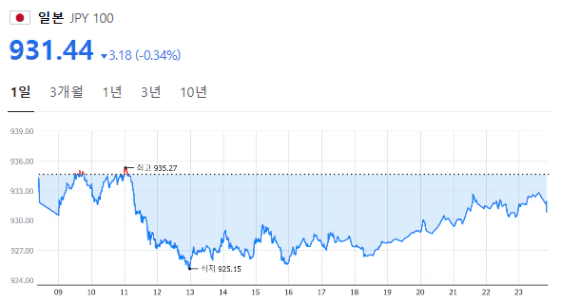 글을 작성하고 있는 8월 12일 월요일 기준으로 엔화는 931원을 기록하고 있습니다.