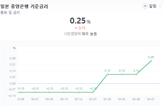 2024년 3월에 드디어 8년 넘게 이어진 마이너스 금리 시대를 끝냈습니다. 0.2%P 금리를 인상했는데 일본은 2007년 이후로 처음으로 금리를 인상했었다고 합니다.
