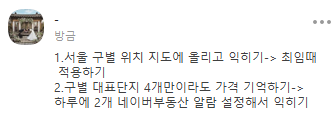 ▷구별 대표되는 단지 4개 만이라도 가격 기억해야 함. 그리고 계속 입혀나가는 것이다.