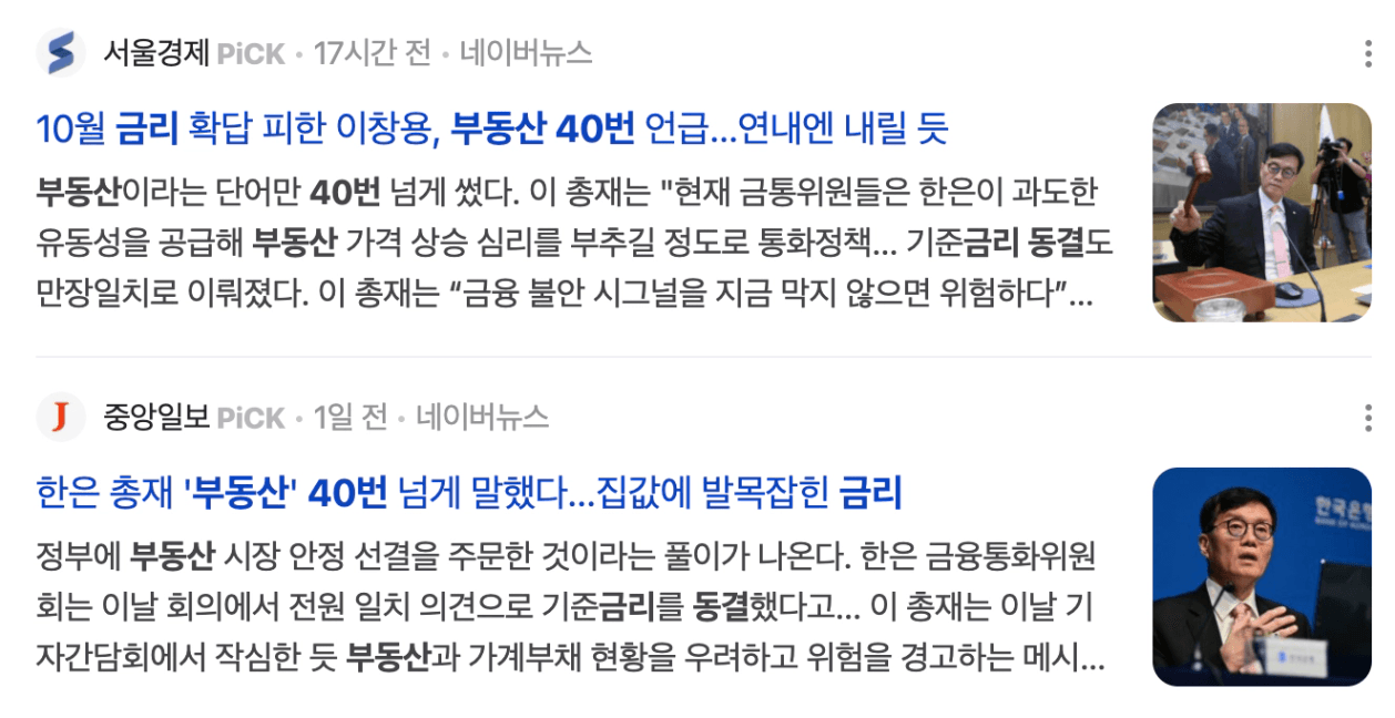 한국은행이 부동산 가격에 관심을 두지 않을 수 없는 상황"