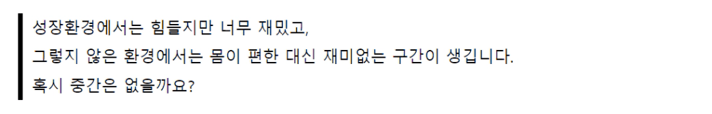 그 중간 지점은 없어요. 컴포트 존은 없어요.