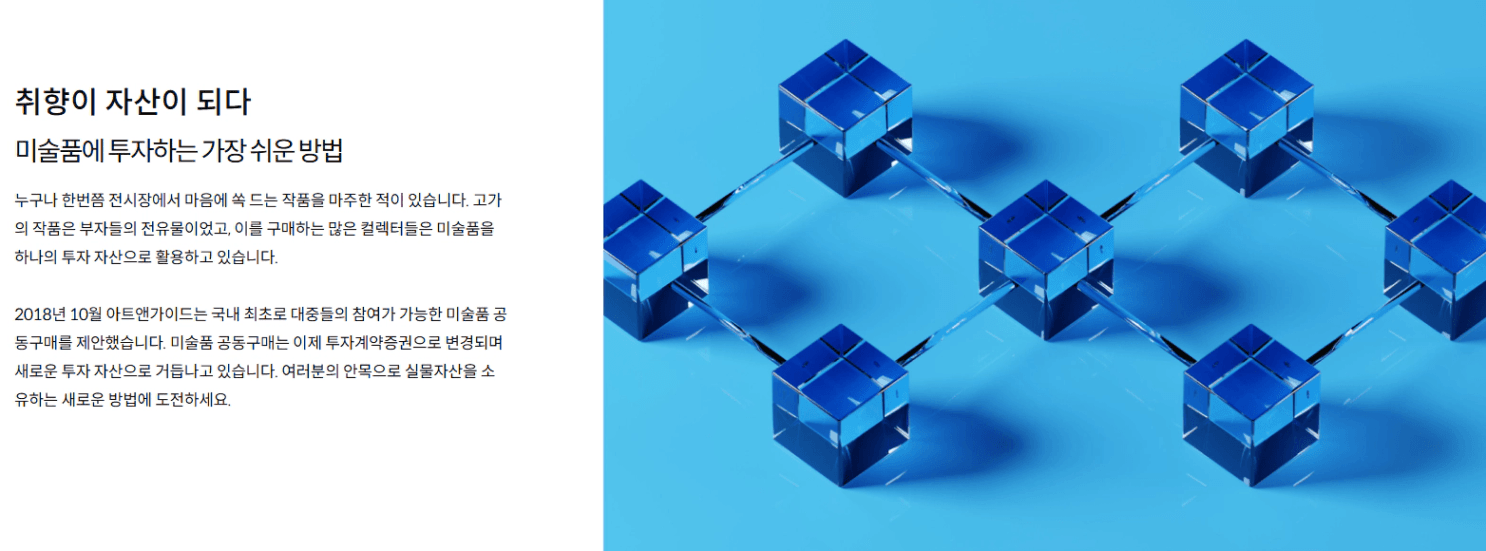 우리나라에서는 2018년 10월부터 '아트앤가이드'라는 회사에서 미술품 조각투자를 시작했다고 합니다.