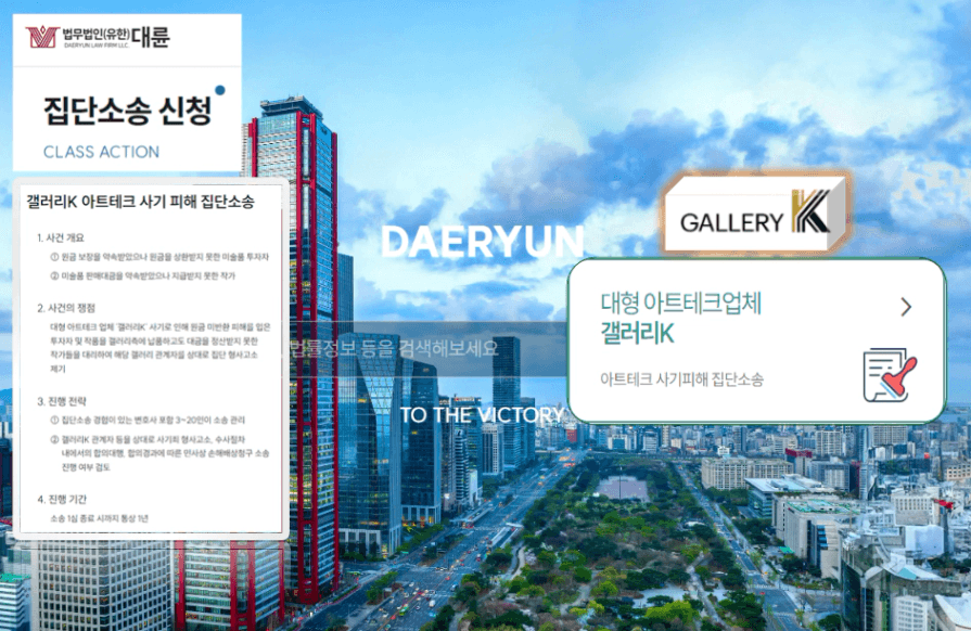 최근에는 대형 아트테크업체 갤리러 K와 집단소송을 하는 법무법인도 있다고 합니다.