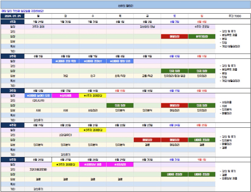 ㅁ 목표: 임장 14, 전임 20, 매임 30