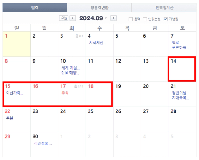 9월 중순에는 추석이 있는데요.