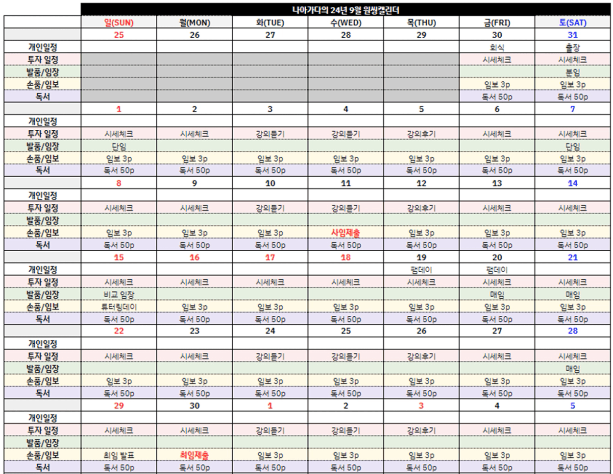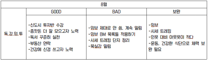 8월을 복기하고 9월 계획을 세워 보았습니다!