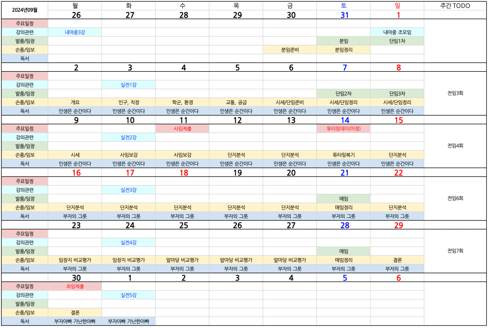 실전반 강의를 수강하게 된 9월 계획 공유하고