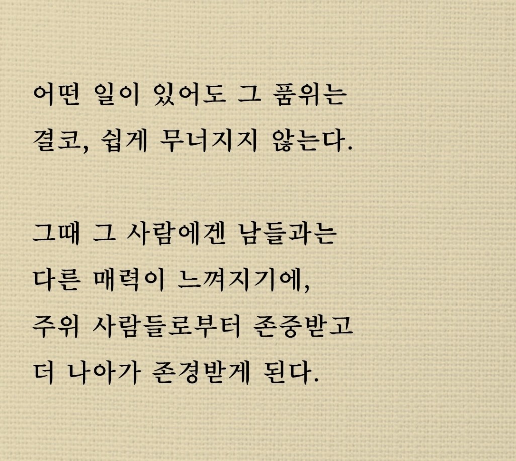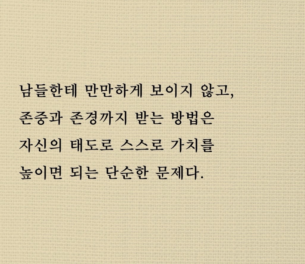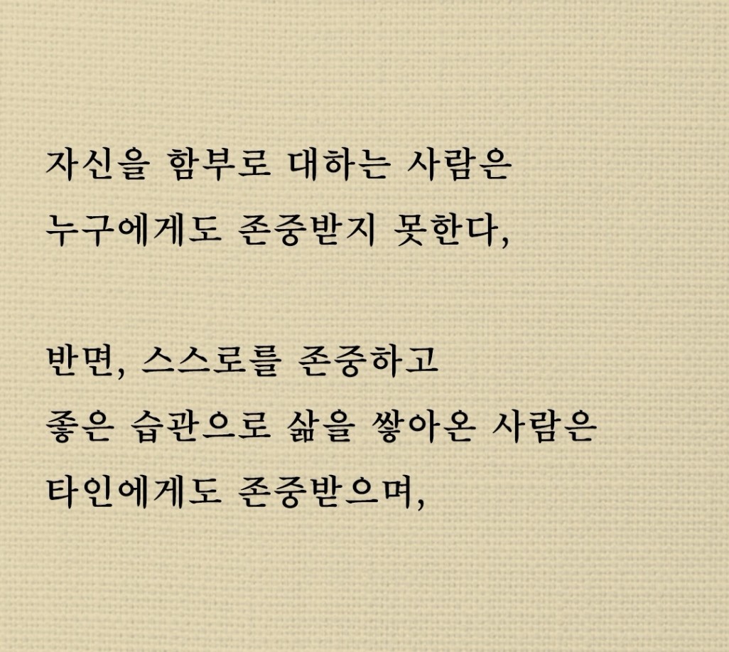 반면에 스스로를 존중하고 좋은 습관을 쌓아온 사람은 타인에게도 존중 받는 법이지요 ~