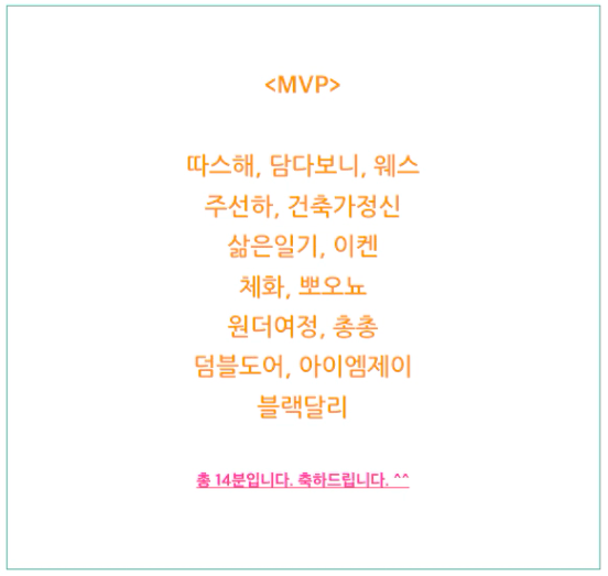 MVP가 되지 않으신 분들도 너무 실망하지 마세요