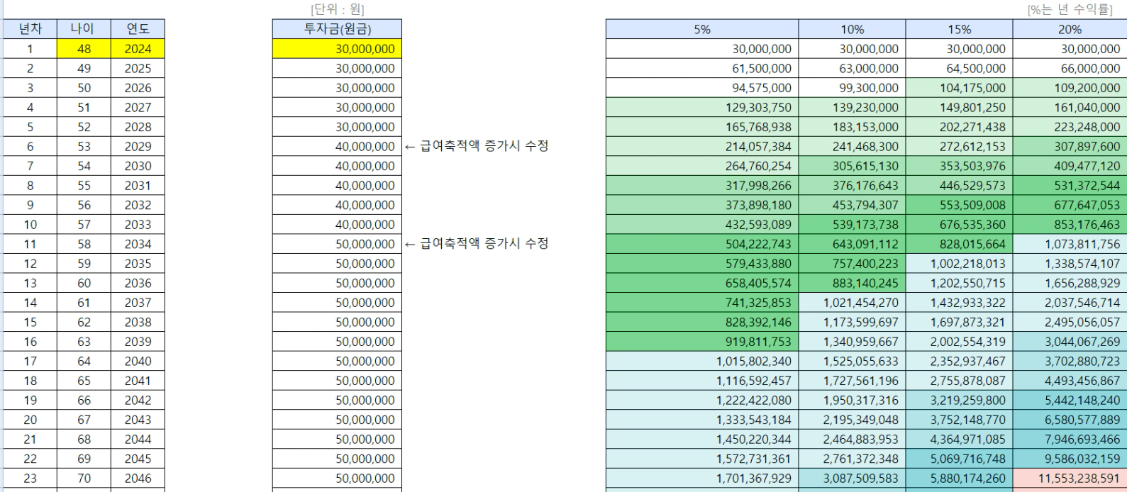 이렇게 계산을 해보니 나의 노후도 노력하면 바뀔 수 있다는 희망이 생겼다.