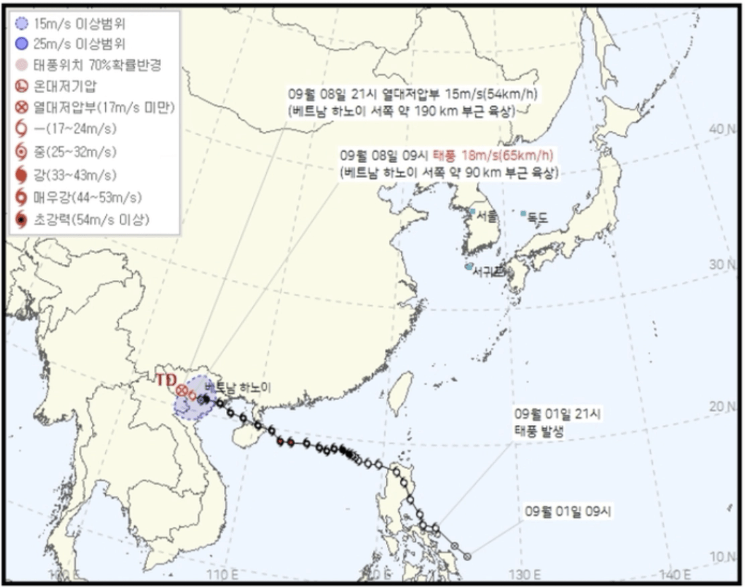 이후 9월 16일 일본 큐슈 서쪽 해상을 지나 북상,