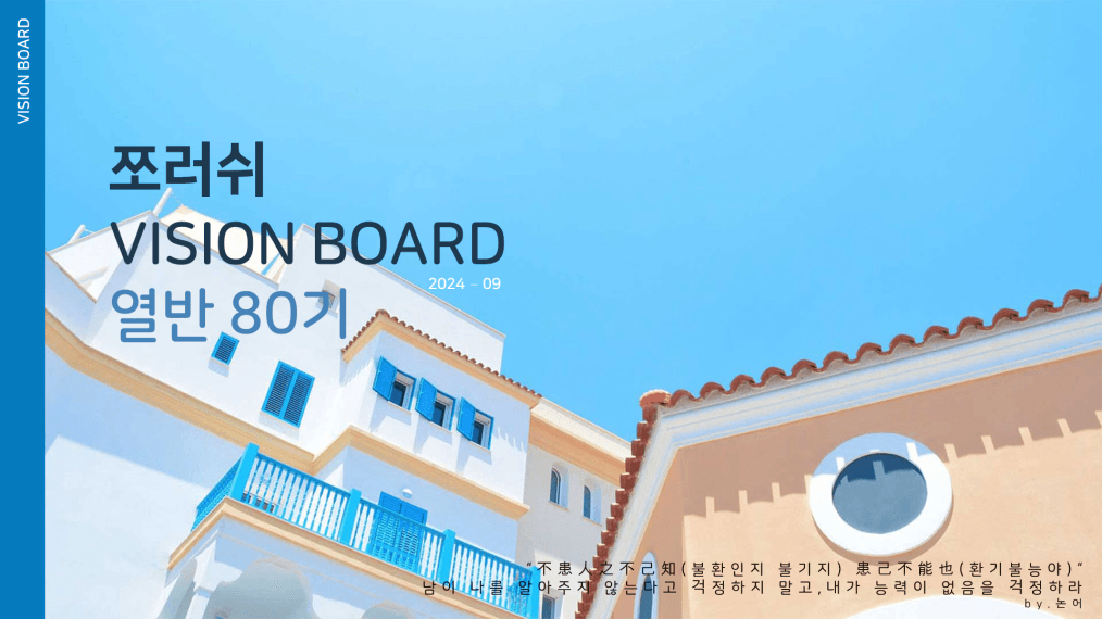 쪼러쉬님 비전보드 작성하느라 고생 많으셨어요. 인생의 나침반이 되는 비전보드!!! 꼭 이뤄가시길 응원합니다.